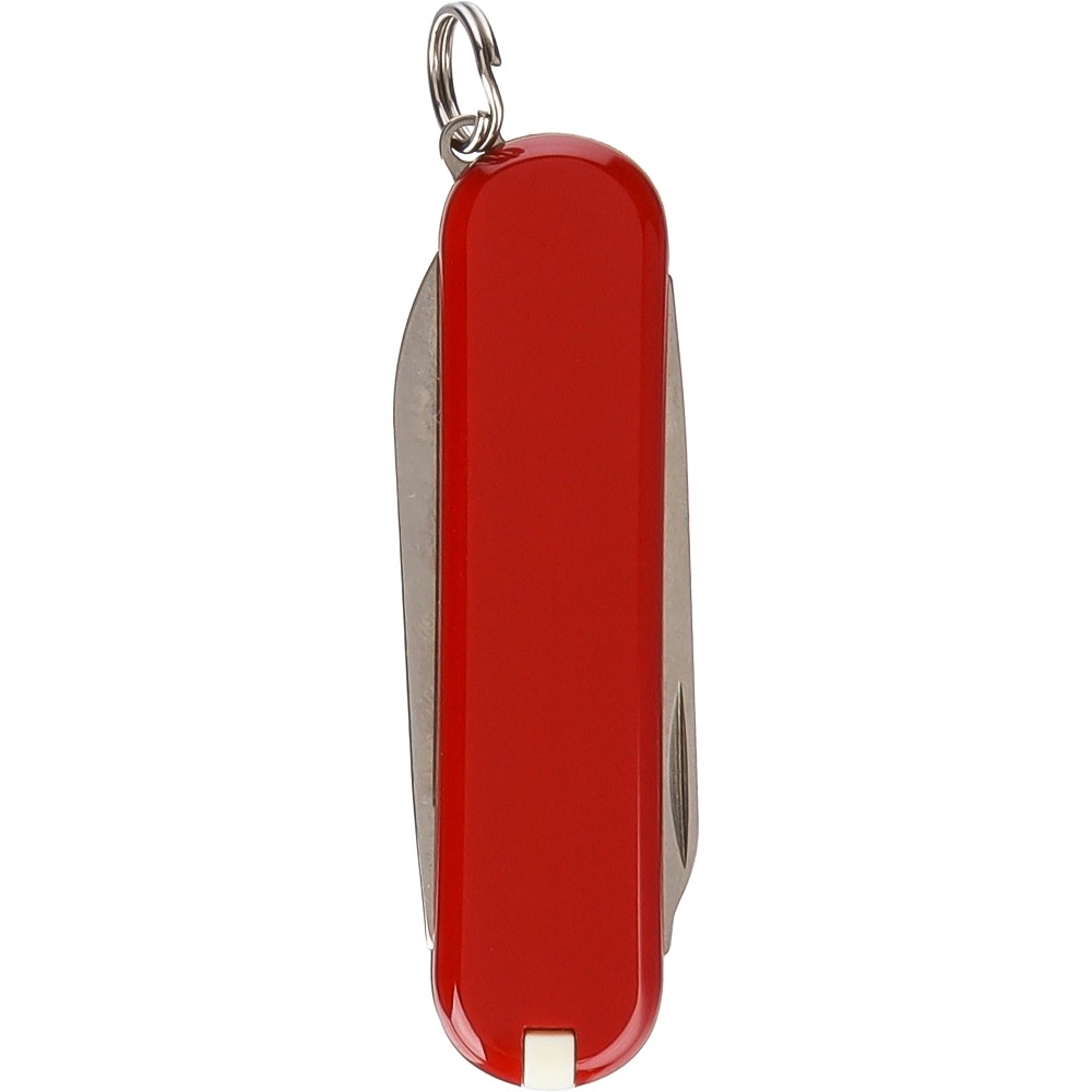 A Victorinox Escort piros zsebkés kompakt sokoldalúságot kínál praktikus, könnyű kivitelben. Az egyik legkisebb zsebkésként praktikus és ideális a mindennapi használatra. A kés hat hasznos funkcióval rendelkezik: kis penge, körömreszelő, 2,5 mm-es csavarhúzó, kulcstartó karika, csipesz és fogvájó. Rozsdamentes acélból készült, piros markolattal, hosszú élettartamra tervezve. A beépített kulcstartó karika segítségével a kés könnyen rögzíthető kulcsokhoz, táskához vagy egyéb felszereléshez, így biztosítva, hogy mindig kéznél legyen. A Victorinox világszerte ismert minőségi svájci bicskáiról, amelyekben a precizitás, a megbízhatóság és a funkcionális kialakítás egyesül egy kompakt multiszerszámban.