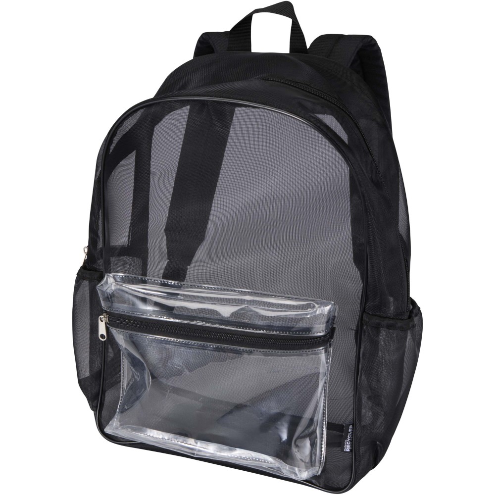 Ez az újrahasznosított poliészter hálóból készült hátizsák fenntartható választást kínál a praktikum és a stílus megőrzése mellett. A termék egy tágas, 18 literes főrekesszel rendelkezik a mindennapi alapfelszerelések számára, egy cipzáras elülső zsebbel a kisebb tárgyaknak, valamint két oldalsó zsebbel, amelyek ideálisak vizespalack vagy esernyő tárolására. A párnázott, állítható vállpántok biztosítják a kényelmes viseletet a nap folyamán. Az átlátszó hálós szerkezet letisztult, modern megjelenést kölcsönöz, miközben láthatóvá teszi a táska tartalmát, így tökéletes megoldást jelent olyan munkahelyeken, rendezvényeken vagy iskolákban, ahol előírás az átlátszó táska használata.