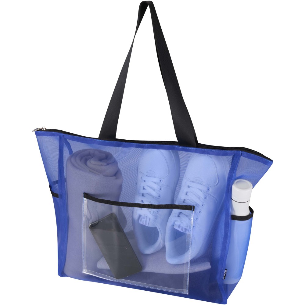 Ez az újrahasznosított poliészter hálóból készült hátizsák fenntartható választást kínál a praktikum és a stílus megőrzése mellett. A termék egy tágas, 18 literes főrekesszel rendelkezik a mindennapi alapfelszerelések számára, egy cipzáras elülső zsebbel a kisebb tárgyaknak, valamint két oldalsó zsebbel, amelyek ideálisak vizespalack vagy esernyő tárolására. A párnázott, állítható vállpántok biztosítják a kényelmes viseletet a nap folyamán. Az átlátszó hálós szerkezet letisztult, modern megjelenést kölcsönöz, miközben láthatóvá teszi a táska tartalmát, így tökéletes megoldást jelent olyan munkahelyeken, rendezvényeken vagy iskolákban, ahol előírás az átlátszó táska használata.