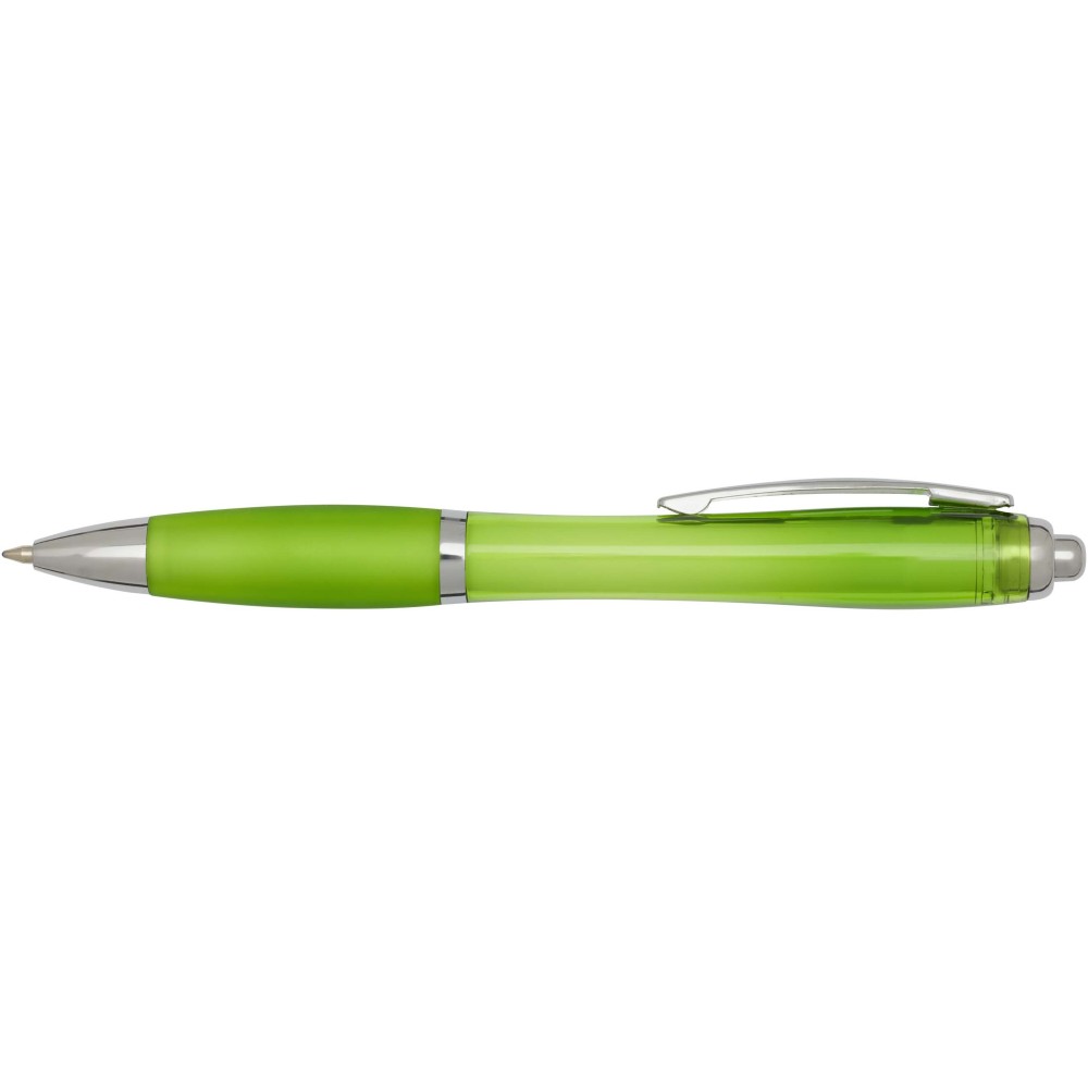 A Nash újrahasznosított műanyagból készült nyomógombos golyóstoll stílusos, ívelt kialakítású, áttetsző színes tolltesttel, ezüst díszítéssel és a tolltest színével megegyező, kényelmes írást biztosító puha fogórésszel rendelkezik. Az RCS tanúsítvánnyal rendelkező újrahasznosított ABS műanyagból készült termék segít csökkenteni a szűz alapanyagok felhasználását, miközben megőrzi tartósságát. A toll hátoldalán található rABS logó jelzi az újrahasznosított anyagösszetételt. Tinta színe: kék. Tollhegy mérete: 1.0 mm. Íráshossz: 1000 méter.