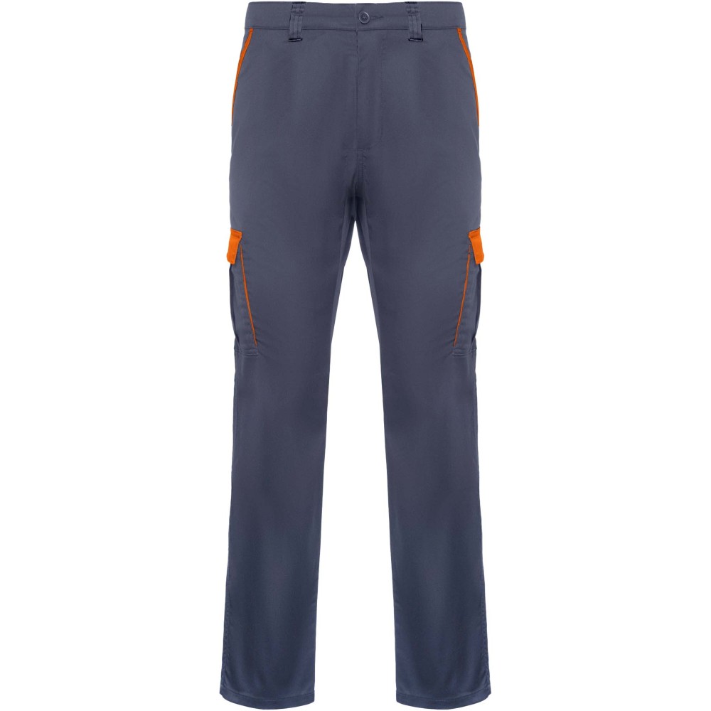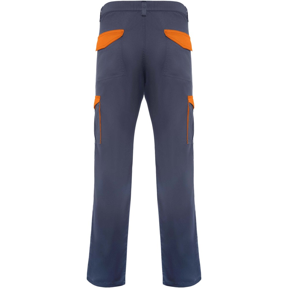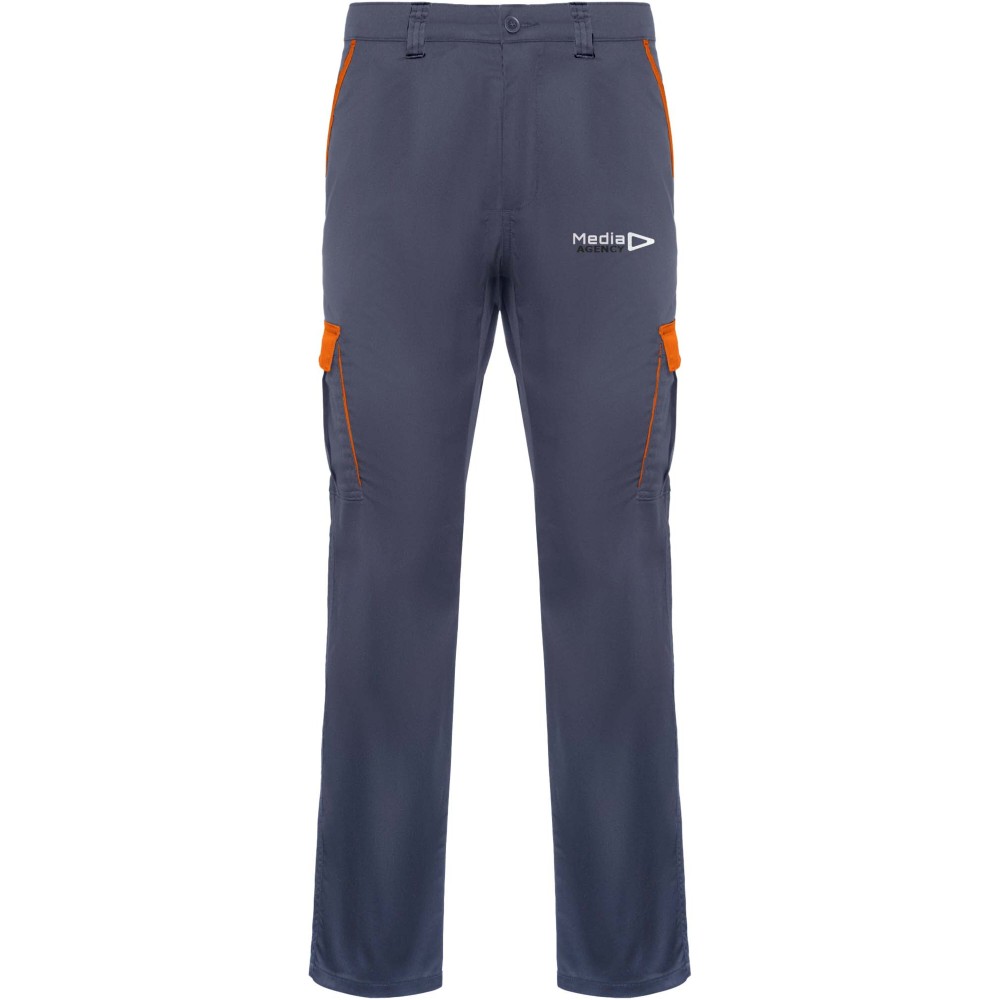 Hosszú szárú munkásnadrág, amely kényelmes és strapabíró anyagból készült. A nadrág hátul gumírozott derékkal rendelkezik az állíthatóság érdekében. Kontrasztos színű övbújtatókkal, zsebfedőkkel, hajtásokkal és szegélyekkel díszített. A praktikus kialakítást két elülső zseb, két tépőzáras fedéllel ellátott, hajtogatott oldalsó zseb, valamint két szintén tépőzáras fedéllel záródó hátsó zseb biztosítja.