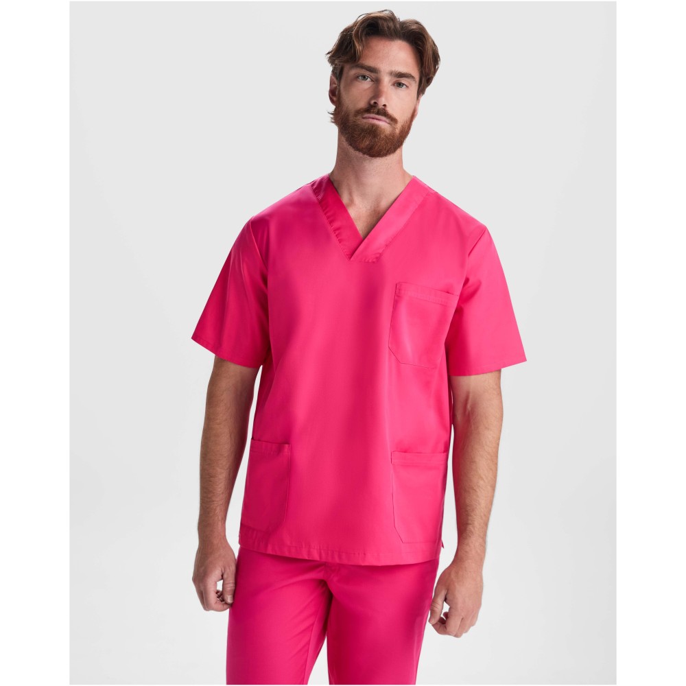Rövid ujjú, unisex munkaruházati felső. Keresztirányú V-nyakkivágással, egy mellzsebbel és két oldalsó zsebbel rendelkezik. Az alsó szegélyen elhelyezett oldalsó hasítékok biztosítják a kényelmes viseletet.