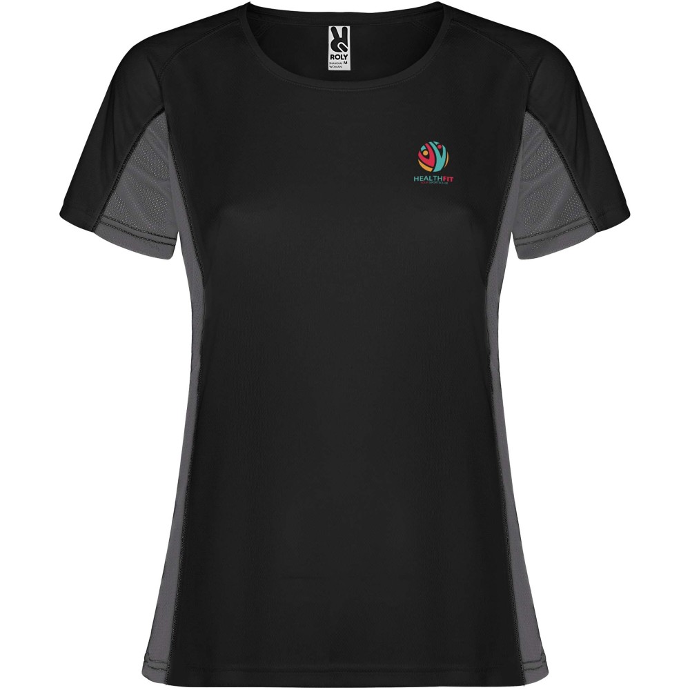 Roly Shanghai rövid ujjú női sportpóló, solid black, dark lead