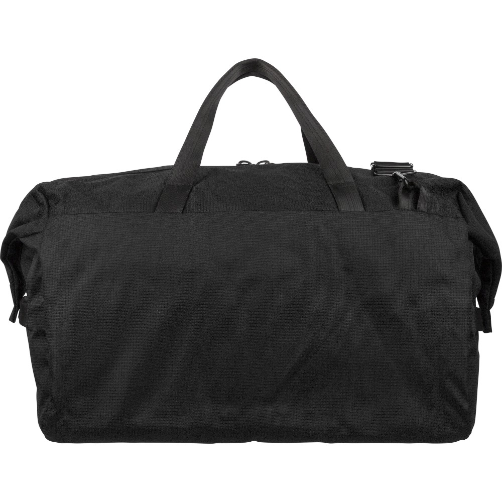 RPET 300D Ocean Bound anyagból készült sporttáska, amely újrahasznosított óceáni műanyagból készül, tartós és texturált felületű kivitelben. 33,7 literes űrtartalommal rendelkezik, nagy fő rekesszel, elülső cipzáras zsebbel és belső cipzáras tárolóval. Két erős fogantyúval, állítható vállpánttal és Ocean Bound Plastic alapanyagra utaló címkével ellátva.