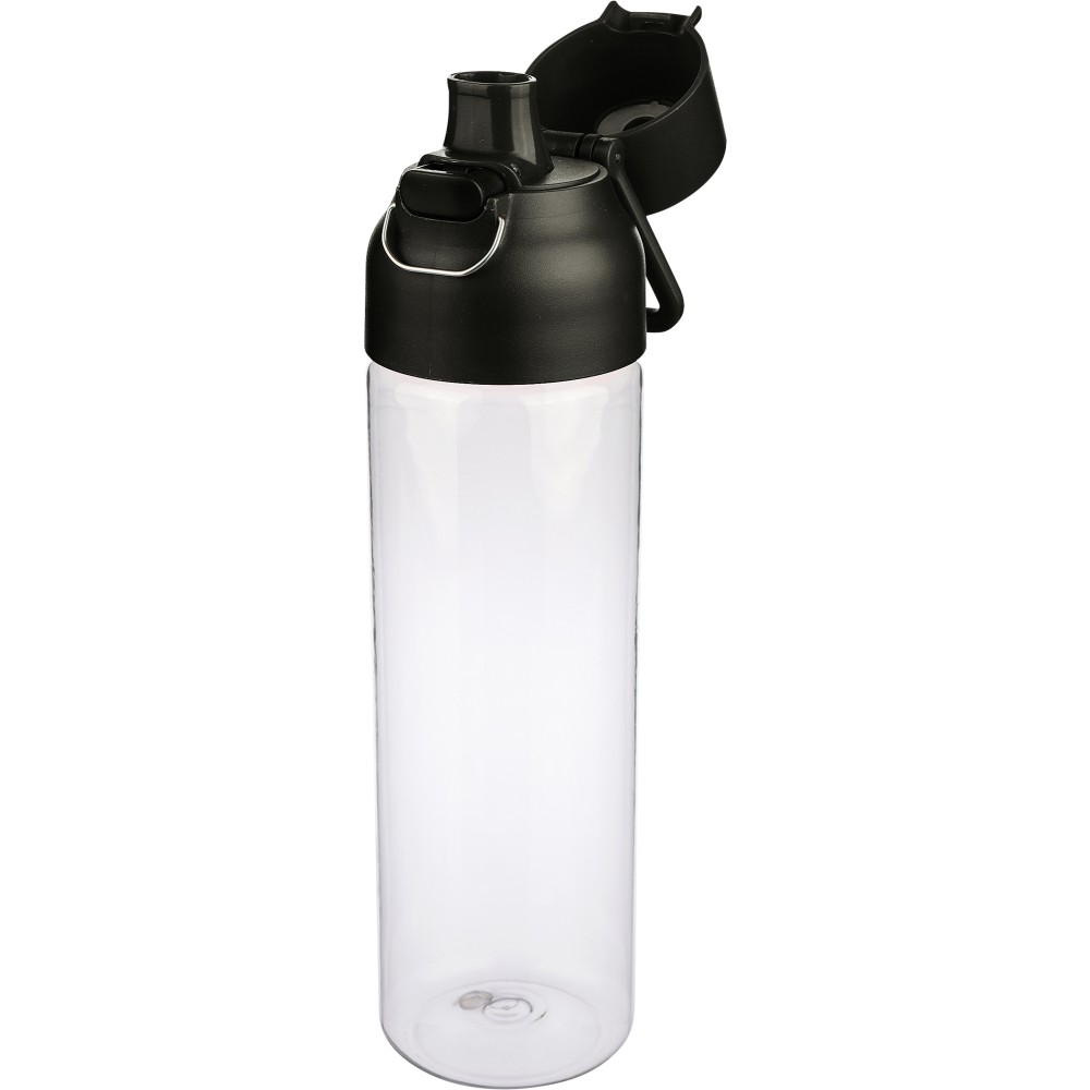 Tritán vizespalack 750 ml-es űrtartalommal, átlátszó palacktesttel és színes kupakkal. Tartós és könnyű anyagokból (PP) készült, amelyek ellenállnak a nedvességnek, a vegyszereknek és a mindennapi igénybevételnek. Mindennapi használatra tervezve; biztonságos nyomógombos zárral és felső hordozófogantyúval rendelkezik. Alkalmas munkához, iskolához vagy szabadtéri tevékenységekhez.