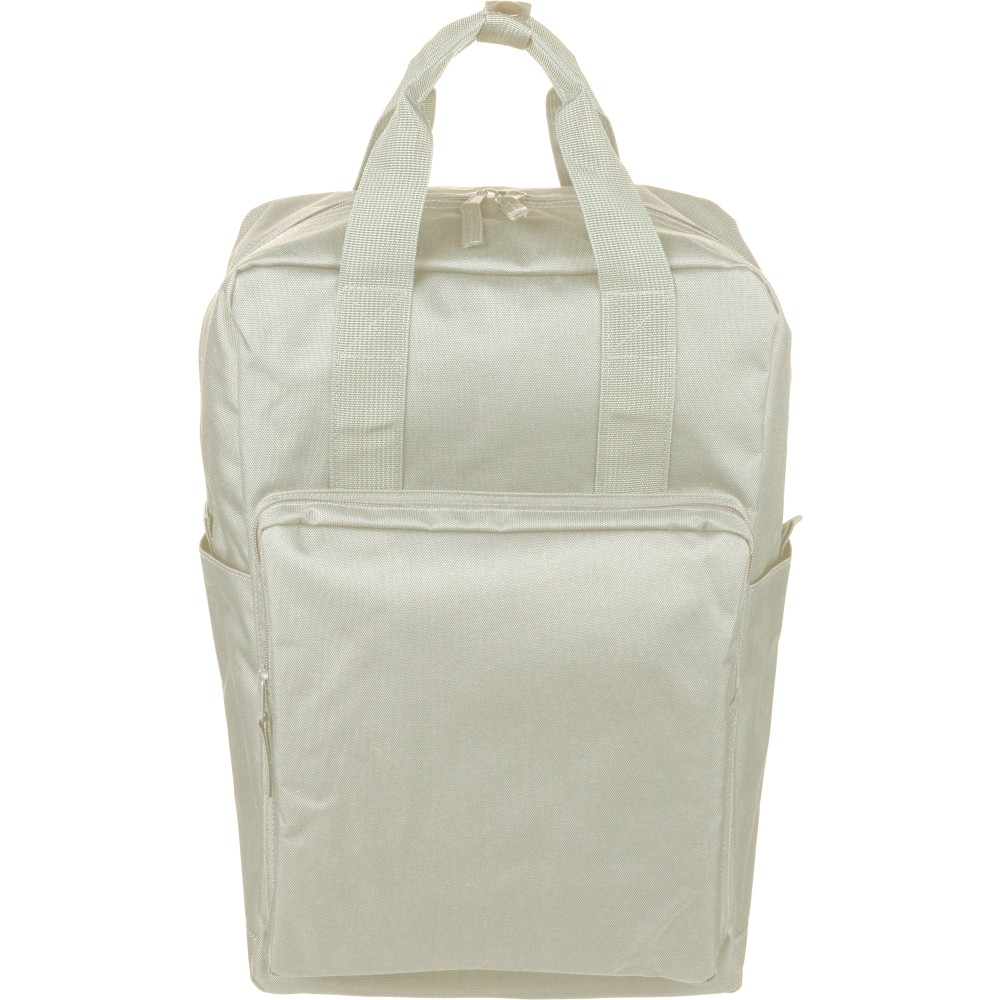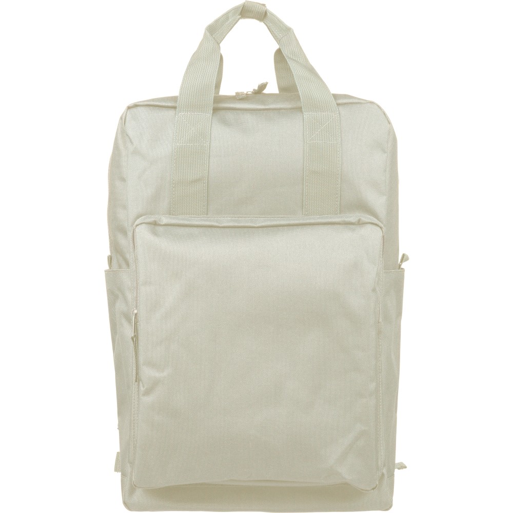 Újrahasznosított 900D poliészterből készült hátizsák, 210D béléssel és rPET címkével. Tágas fő rekesszel rendelkezik, 16?-os laptop számára kialakított külön zsebbel, elülső rekesszel, két oldalzsebbel, valamint bőröndre rögzíthető pánttal (trolley strap). Felső fogantyúi gombbal összefoghatóak, vállpántjai szellőző kialakításúak a kényelmes viselet érdekében.