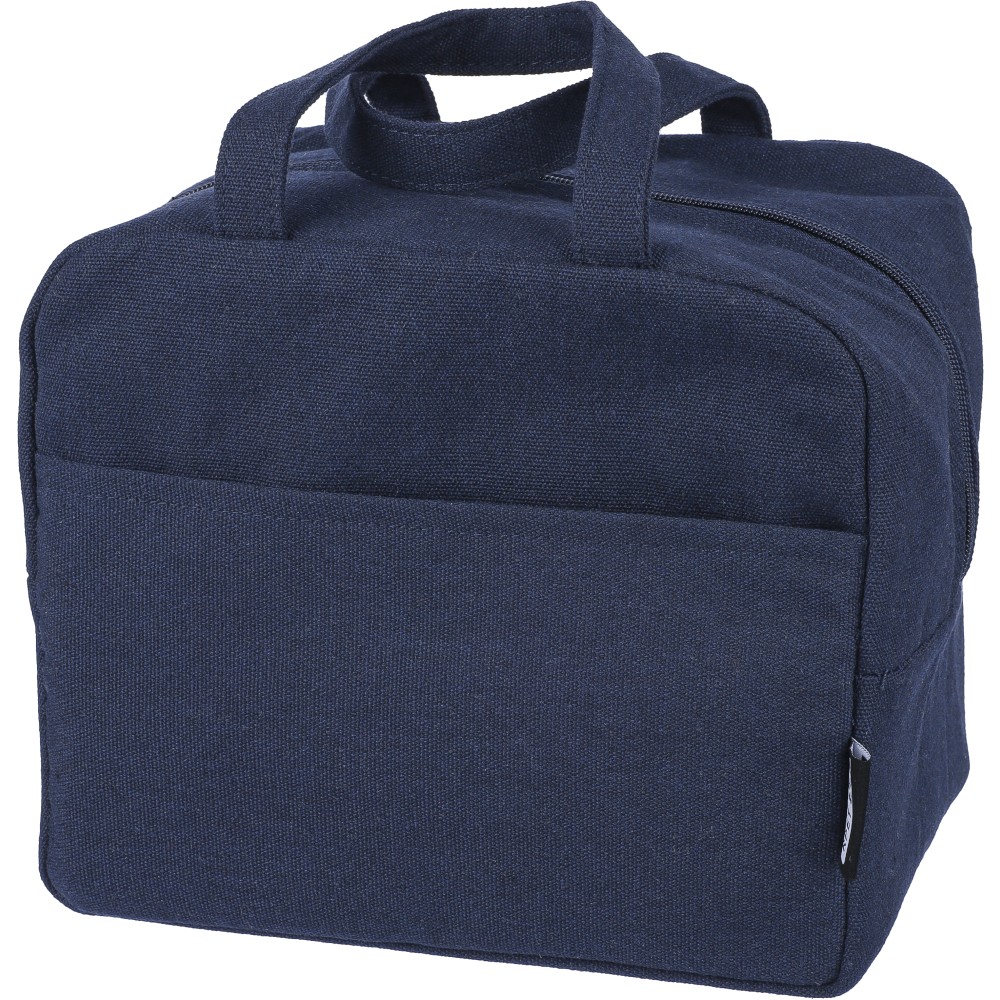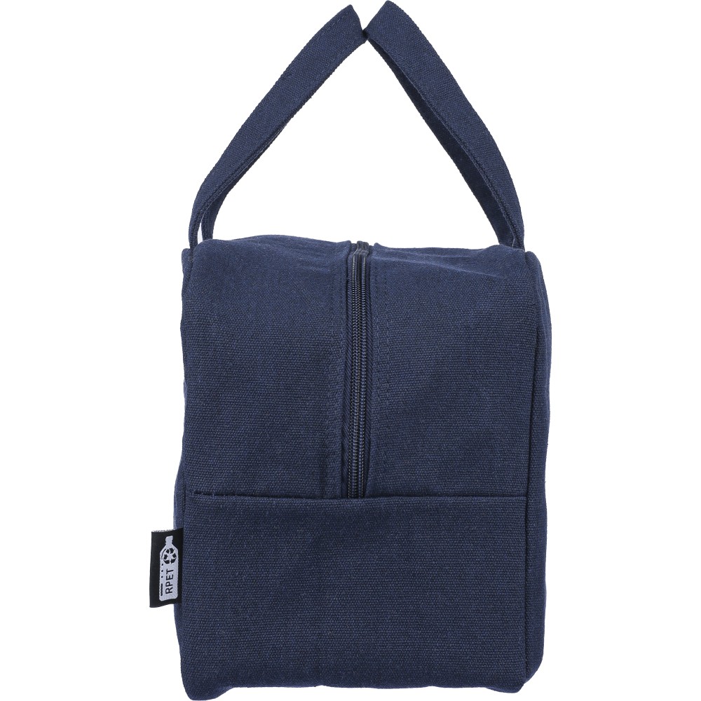 Hűtőtáska 330 g/m2 újahasznosított policotton anyagból, 210D poliészter béléssel és párnázott alumíniumfólia belsővel. 8 literes űrtartalommal, hordozópánttal, színben illeszkedő részletekkel és 5 kg teherbíró képességgel. Címkét tartalmaz.