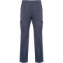 Hosszú szárú munkásnadrág, amely kényelmes és strapabíró anyagból készült. A nadrág hátul gumírozott derékkal rendelkezik az állíthatóság érdekében. Kontrasztos színű övbújtatókkal, zsebfedőkkel, hajtásokkal és szegélyekkel díszített. A praktikus kialakítást két elülső zseb, két tépőzáras fedéllel ellátott, hajtogatott oldalsó zseb, valamint két szintén tépőzáras fedéllel záródó hátsó zseb biztosítja.