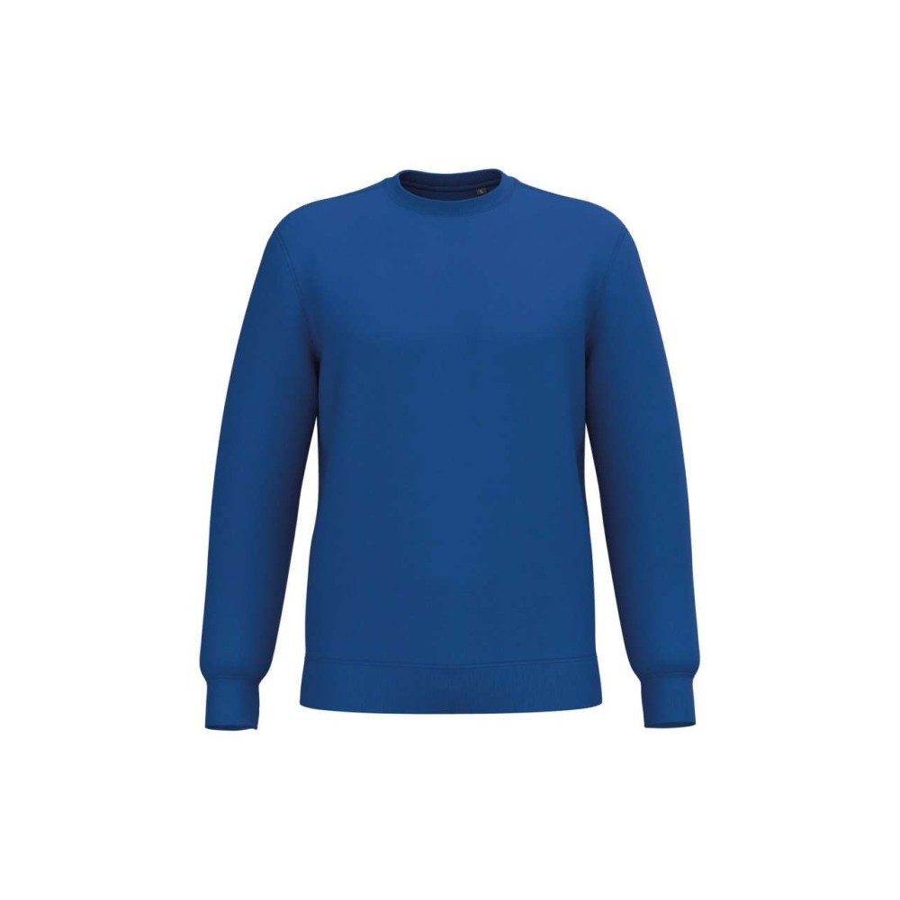 280 g/m2, 50% gyűrött pamut/50% újrahasznosított poliészter. Csiszolt polár anyag, egyenes szabás, környakas fazon. Vágott és varrott, 1x1 bordás, csőszerű összeállítás a nyakvonal, a mandzsetták és az alsó szegély jobb kiviteléért. Tónusban megegyező jersey szalag a nyakvonal belsejében. Nincs márkajelzés a nyakvonalon, csak méretcímke a könnyű dekorálás érdekében.