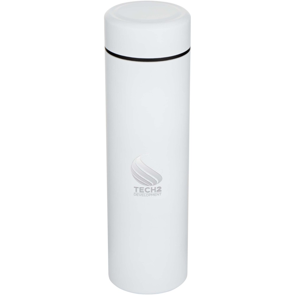 Duplafalú, vákuumszigetelt rozsdamentes acélból készült termosz, amely hosszú ideig tartja az italokat a kívánt hőmérsékleten. A kényelmesebb használat érdekében egy kivehető teaszűrőt tartalmaz. A 450 ml-es űrtartalom és a szivárgásmentes kialakítás révén ideális választás a mindennapi használatra vagy utazásokhoz.